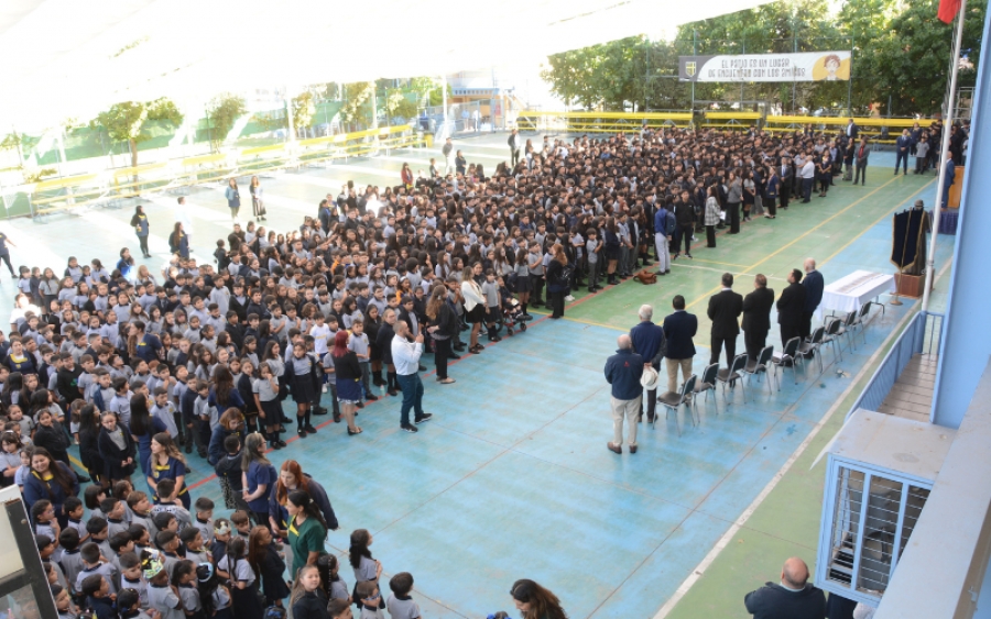 Posteriormente, a eso de las 10:00 AM, toda la comunidad se trasladó en pleno hasta el patio central del establecimiento, lugar donde se dio por comenzado el año con el primer saludo de Buenos Días comunitario.